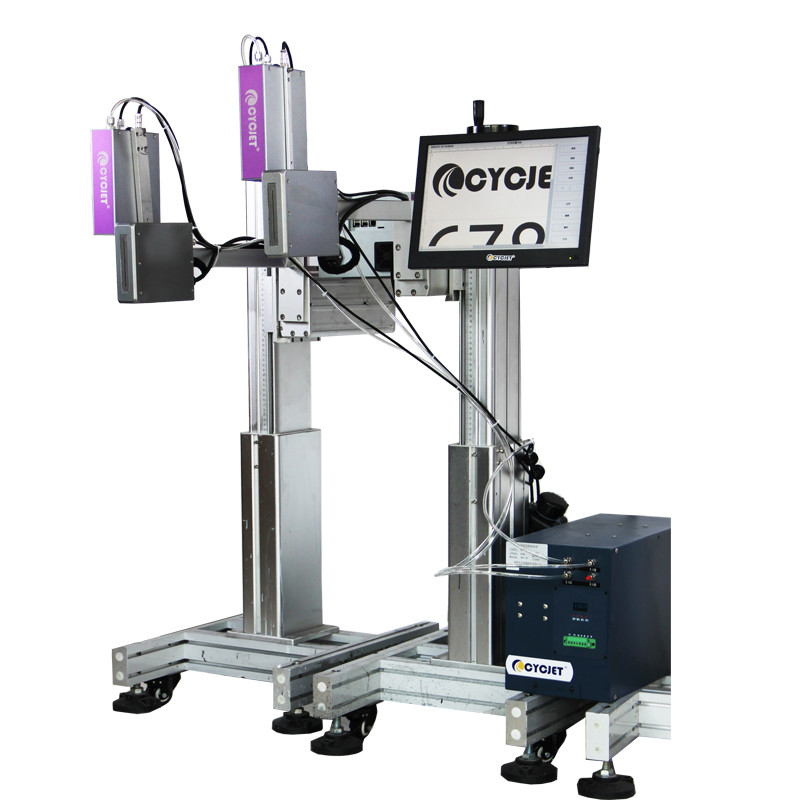 Der grossräumige Tintenbehälter des Charakter-Tintenstrahldruckers CYCJET großen könnte die Frequenz der Tintenanreicherung in der Hochgeschwindigkeitsproduktion verringern, ohne die Maschine zu stoppen. Die mehrfachen Düsen, die durch eine einzelne Tinteneinheit geliefert werden, können Großformatdruckpläne zur Verfügung stellen, und ein Prüfer C702 kann multi-mit Seiten versehene Kodierung von Kästen auch erzielen.